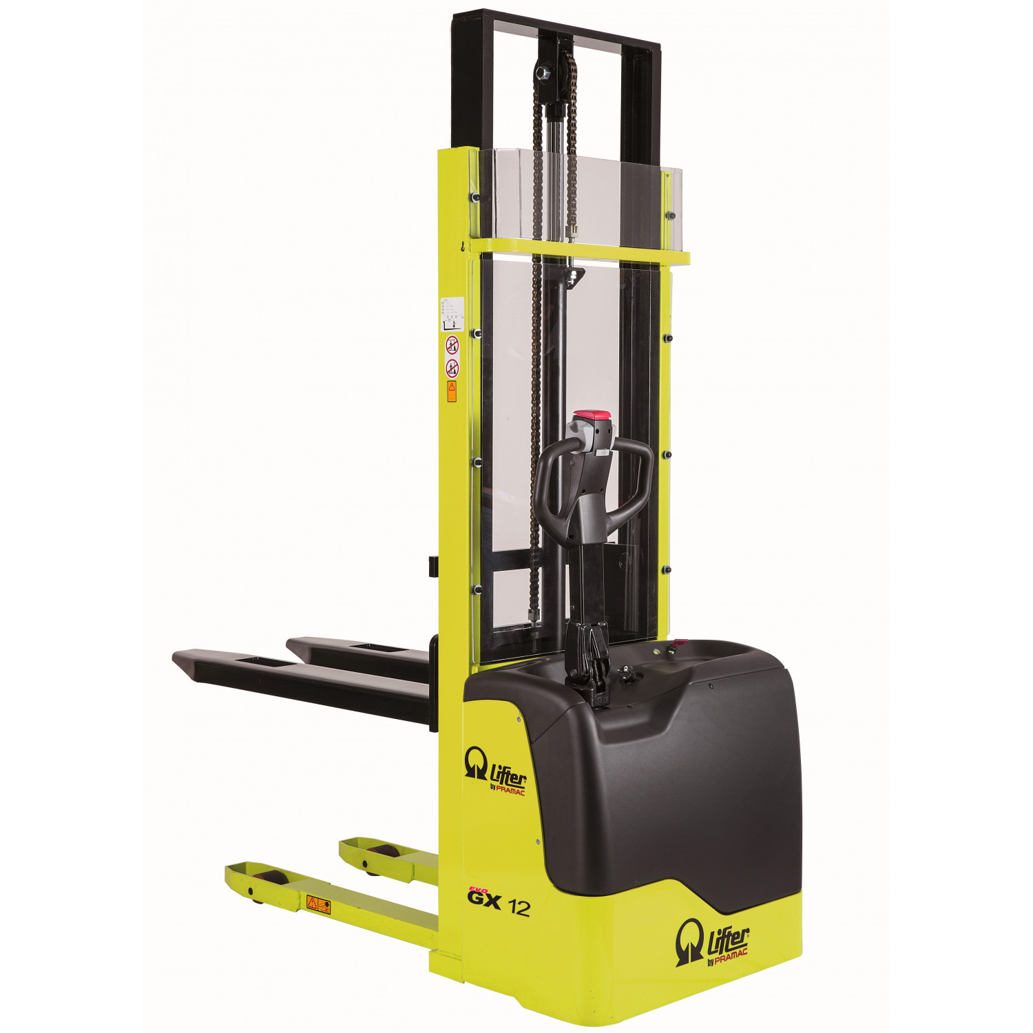 - Die reduzierte Breite von 800 mm, das seitliche Antriebssystem und die breite Mastpositionierung ermöglichen eine große Wendigkeit, Stabilität und Sicht