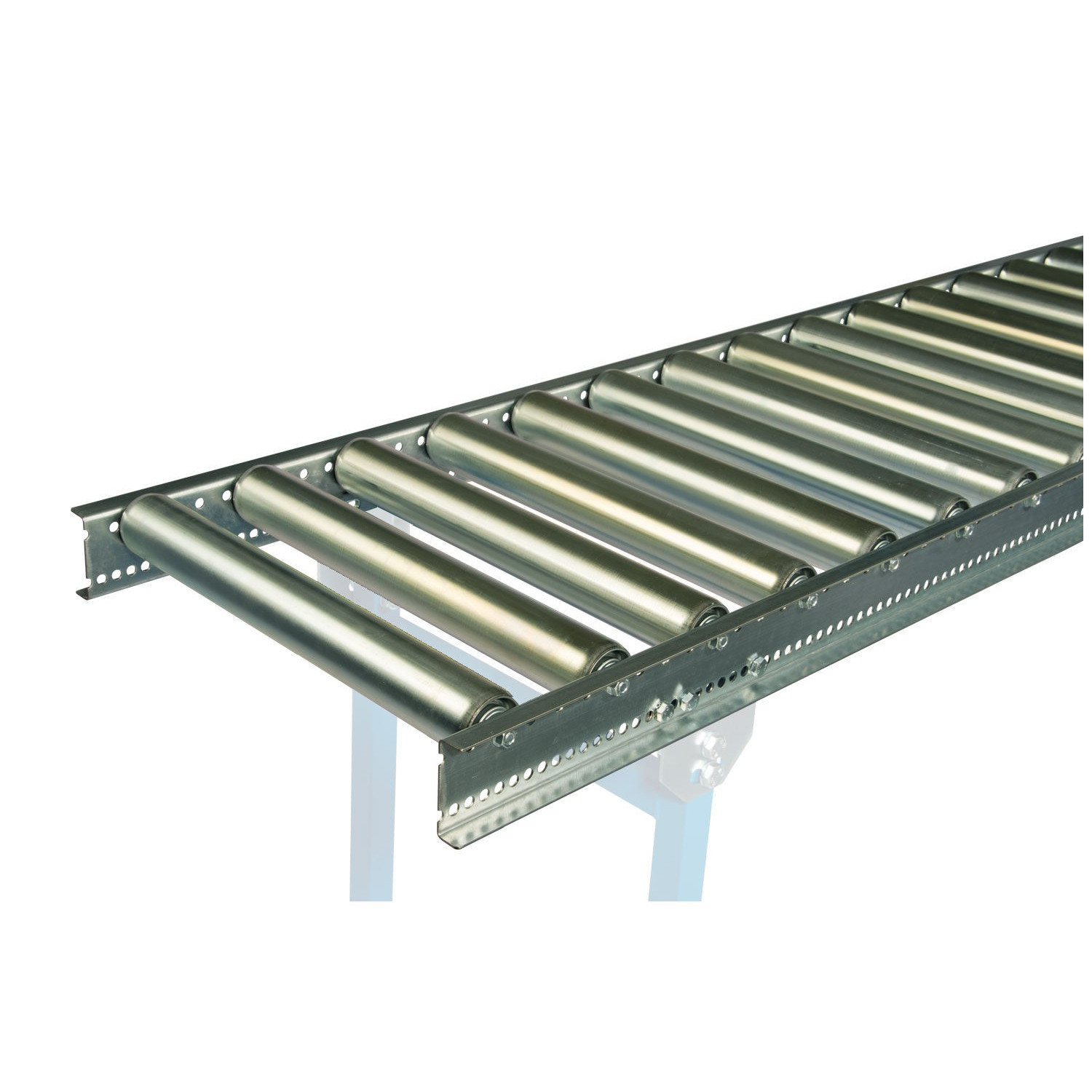 - Die Tragkraft ist für Fördergüter im manuellen Handling ausgelegt. Bei Einsatz von Kunststoff-Tragrollen sollte das Gewicht des Fördergutes in der Regel nicht mehr als 20 -25 Kg/Stück (Richtwert) betragen. Mit Stahl-Tragrollen können die Fördergut-Gewichte bis 40 kg/Stück (Richtwert) betragen. Zu berücksichtigen sind Bahnbreite, Rollenabstand sowie der Stützabstand.