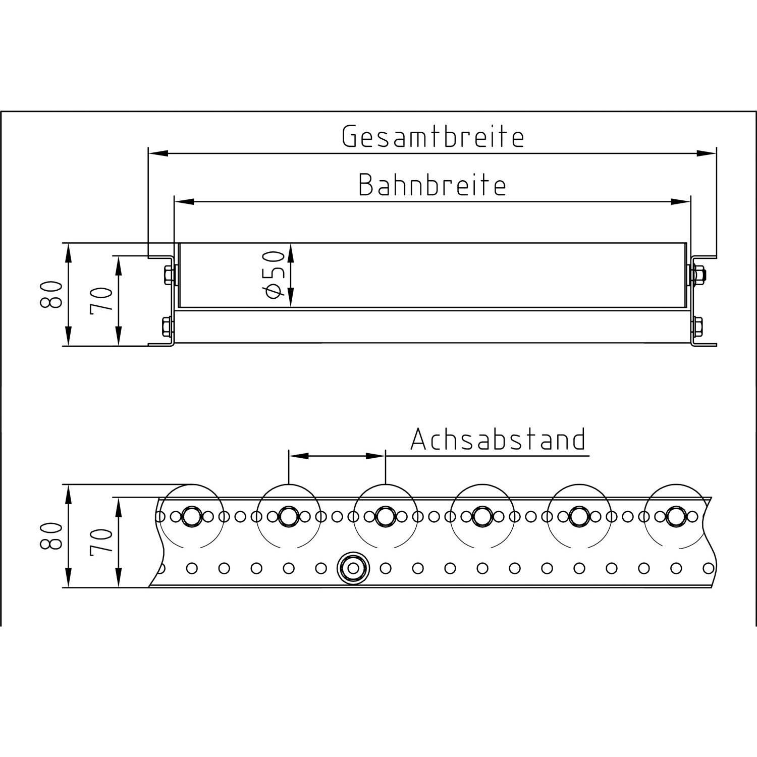 Die Tragkraft der Rollenbahnen ist abhängig von Bahnbreite, Rollenabstand sowie dem Abstand der Stützen. Der Stützabstand sollte nicht größer als 2 m gewählt werden.