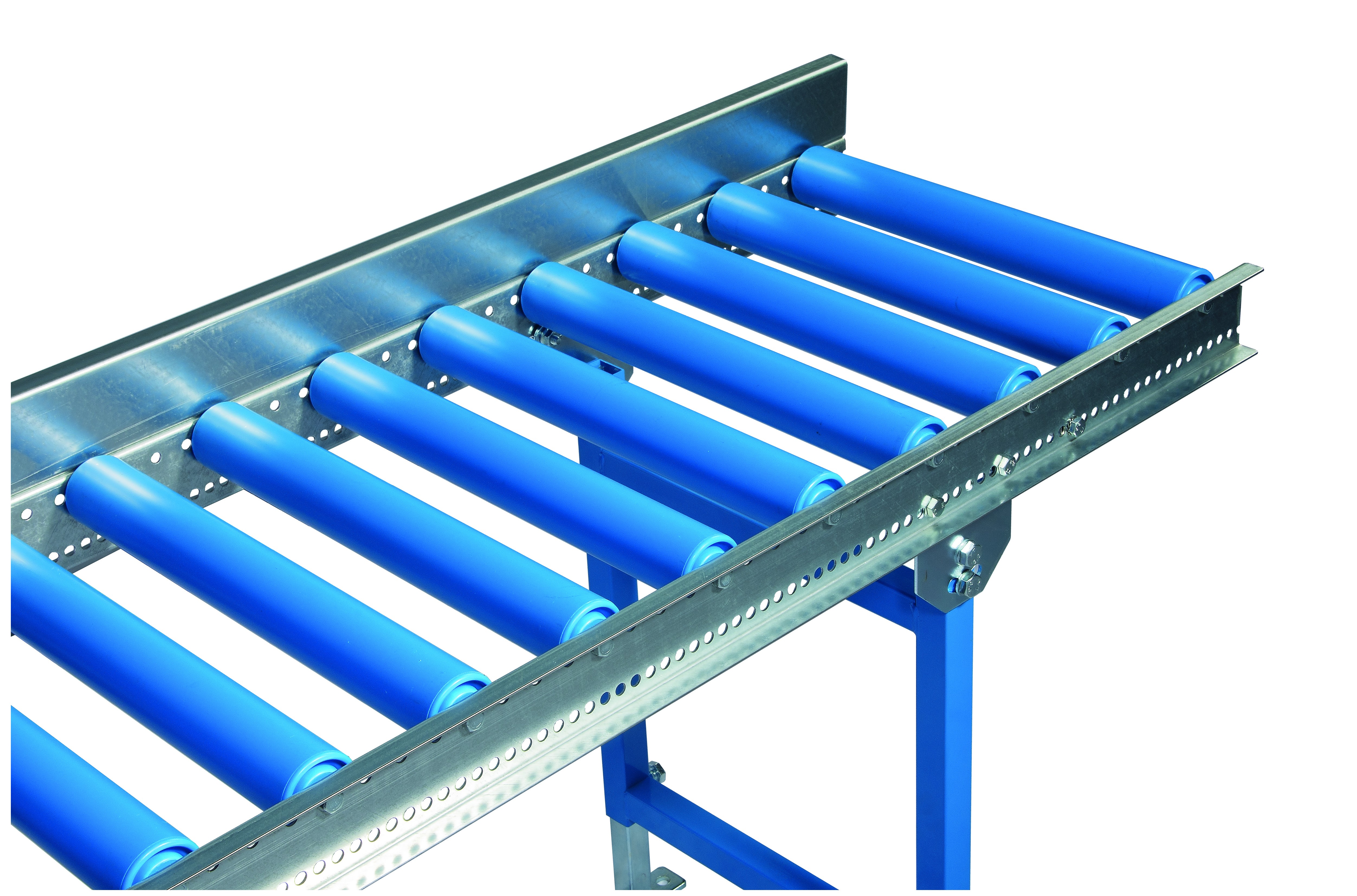 • Die Seitenführung verhindert ein Herunterfallen des Förderguts von der Rollenbahn und somit auch Beschädigungen an der Ware