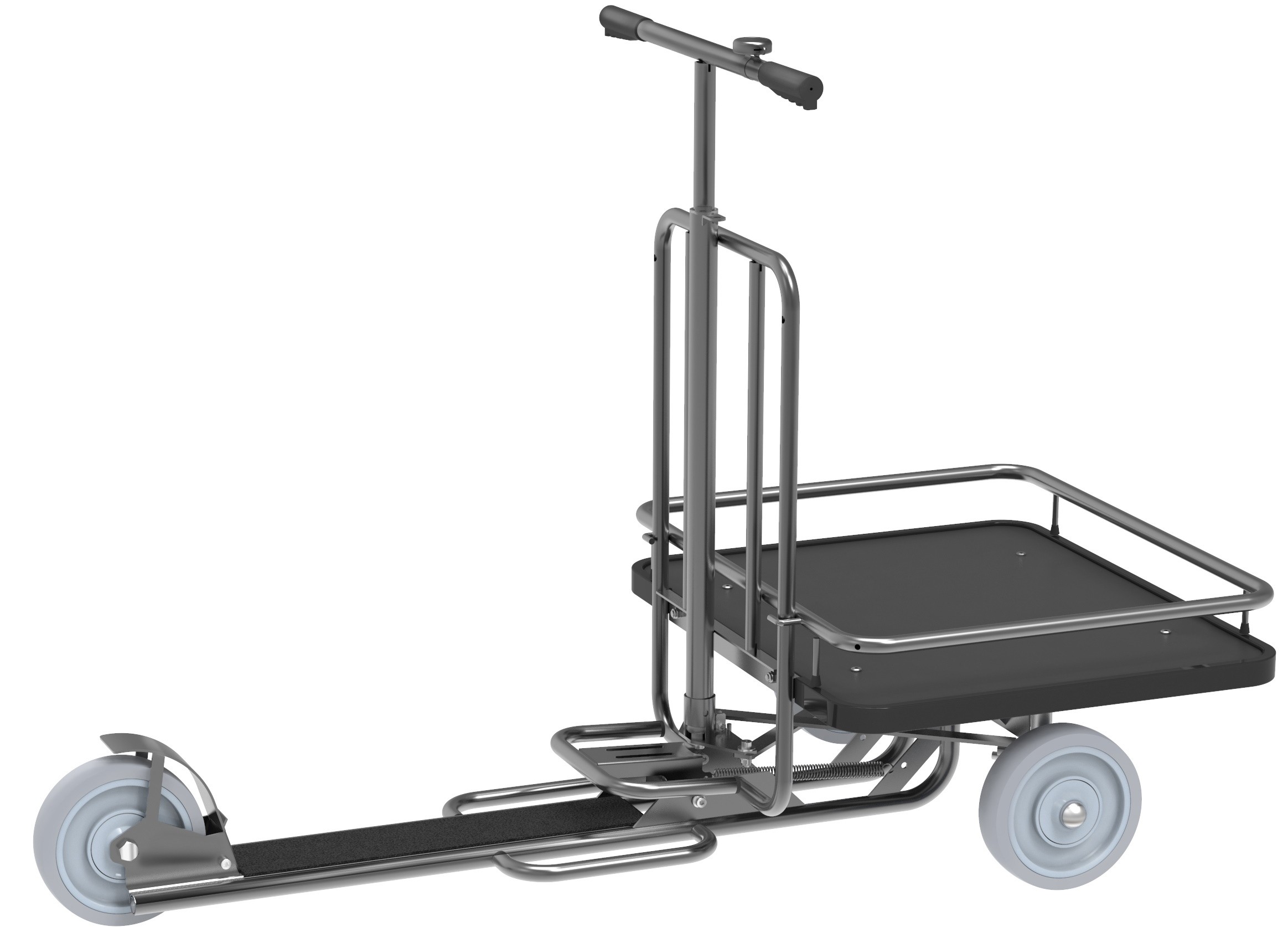 - Der Firmenroller hat eine Fußplatte mit einer rutschfesten Oberfläche für einen sicheren Halt beim Fahren