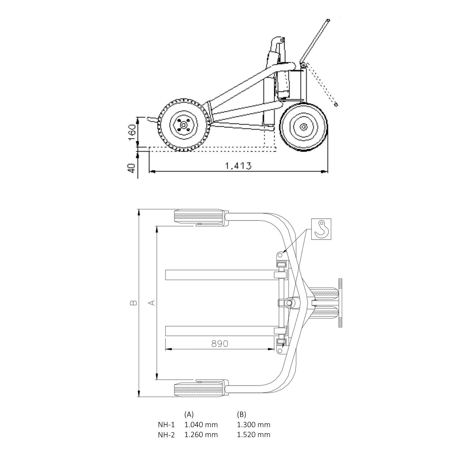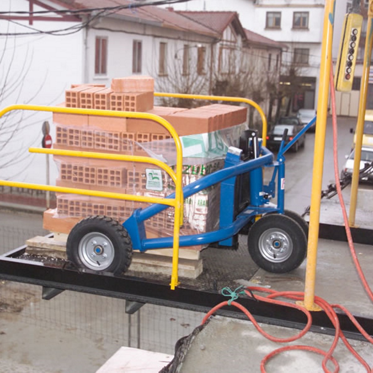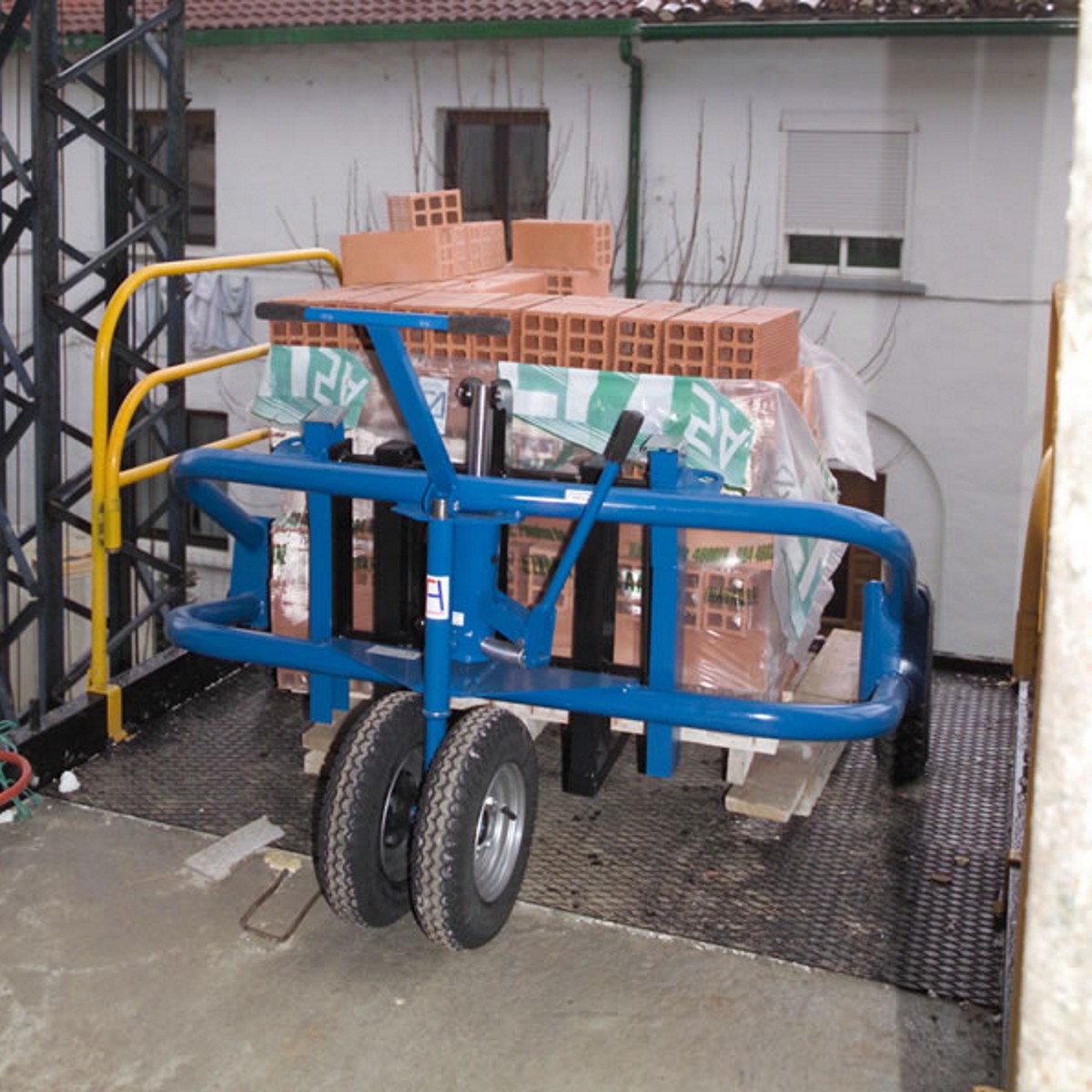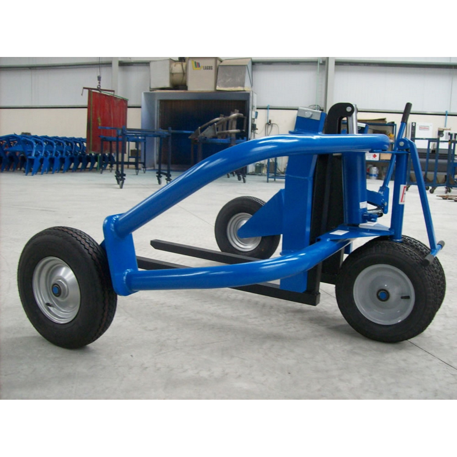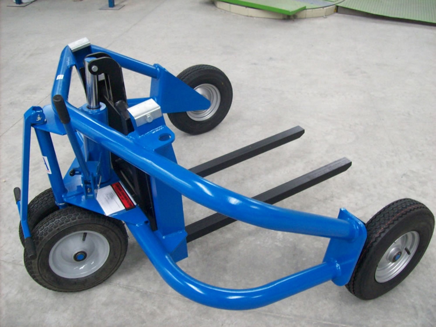 Der Geländehubwagen ist mit einer profilierten Luftbereifung ausgestattet. Somit eignet sich das Arbeitsgerät ideal für den Einsatz auf beispielsweise Schotterplätzen und Kieswegen. Der Gabelaußenabstand kann dank der beweglichen Gabelzinken bis zu einer wählbaren Palettenbreite von 1.000 - 1.200 mm individuell ausgewählt werden. Mit einer Tragkraft von 1.500 kg hebt der Geländehubwagen fast alles, was ein normaler Hubwagen mit Standardmaßen auch heben kann. Der Geländehubwagen überzeugt besonders mit einer verstärkten Hubdeichsel.