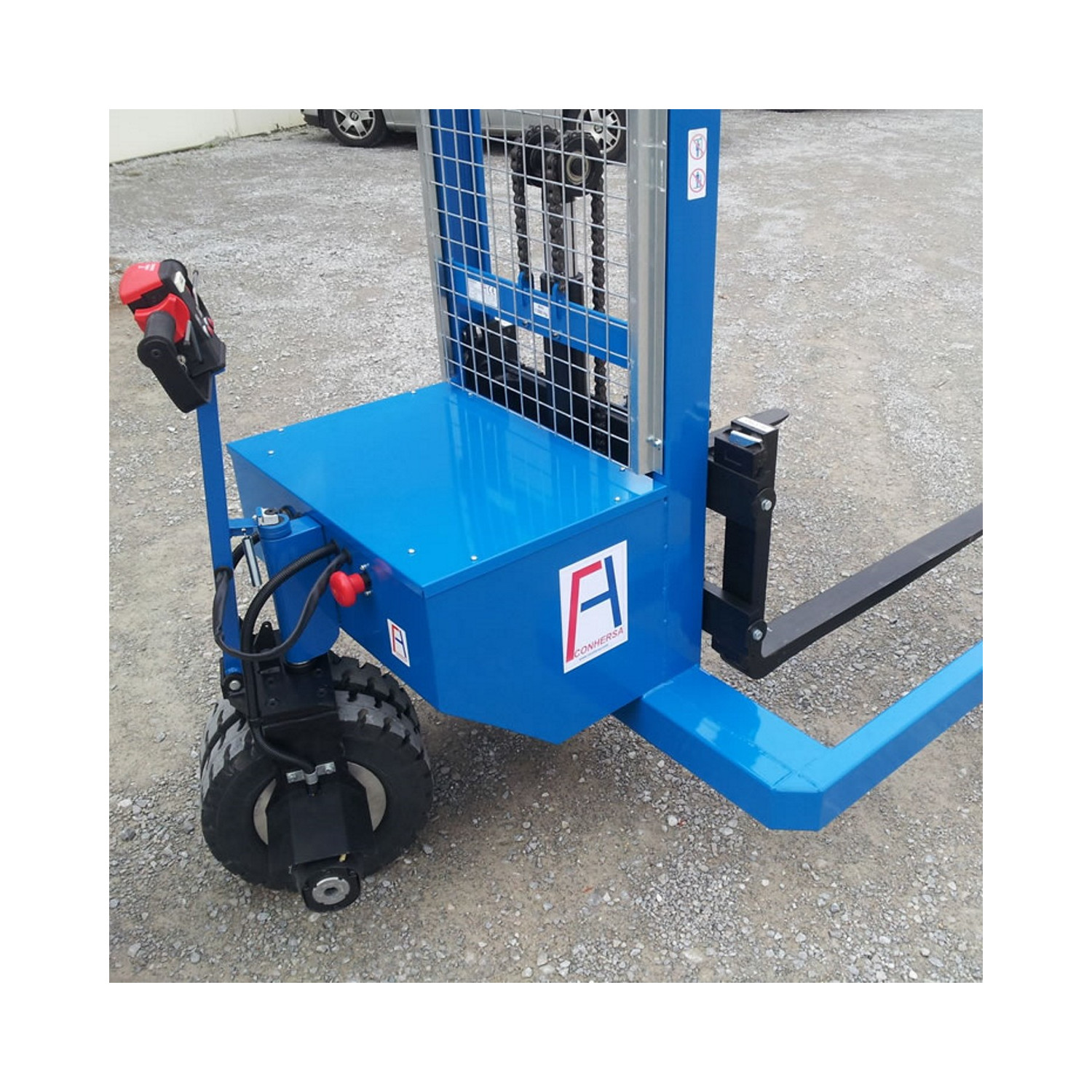 Die geländegängigen Hochhubwagen mit Elektromotor sind eine spezielle Form der elektrischen Hochhubwagen. Die Geräte wurden für das Heben und Transportieren schwerer Lasten bis zu 1.200 kg auf unwegsamen Untergründen konzipiert. Die Geräte eignen sich ideal für Transporte und das Palettenhandling auf Schotter, Wiesen und Feldern. Aber auch auf Baustellen, in der Landwirtschaft und im Allgemeinen auf unwegsamen Gelände sind diese Gelände-Hochhubwagen mit elektrischem Hubmotor eine leistungsstarke Transporthilfe. Nutzen Sie die Arbeitsgeräte ebenfalls um innerhalb der Eventtechnik Ihre Lasten zu Verladen. So können Zäune, Absperrelemente und Bühnenteile über die Felder und Wiesen zum Zielort transportiert werden.