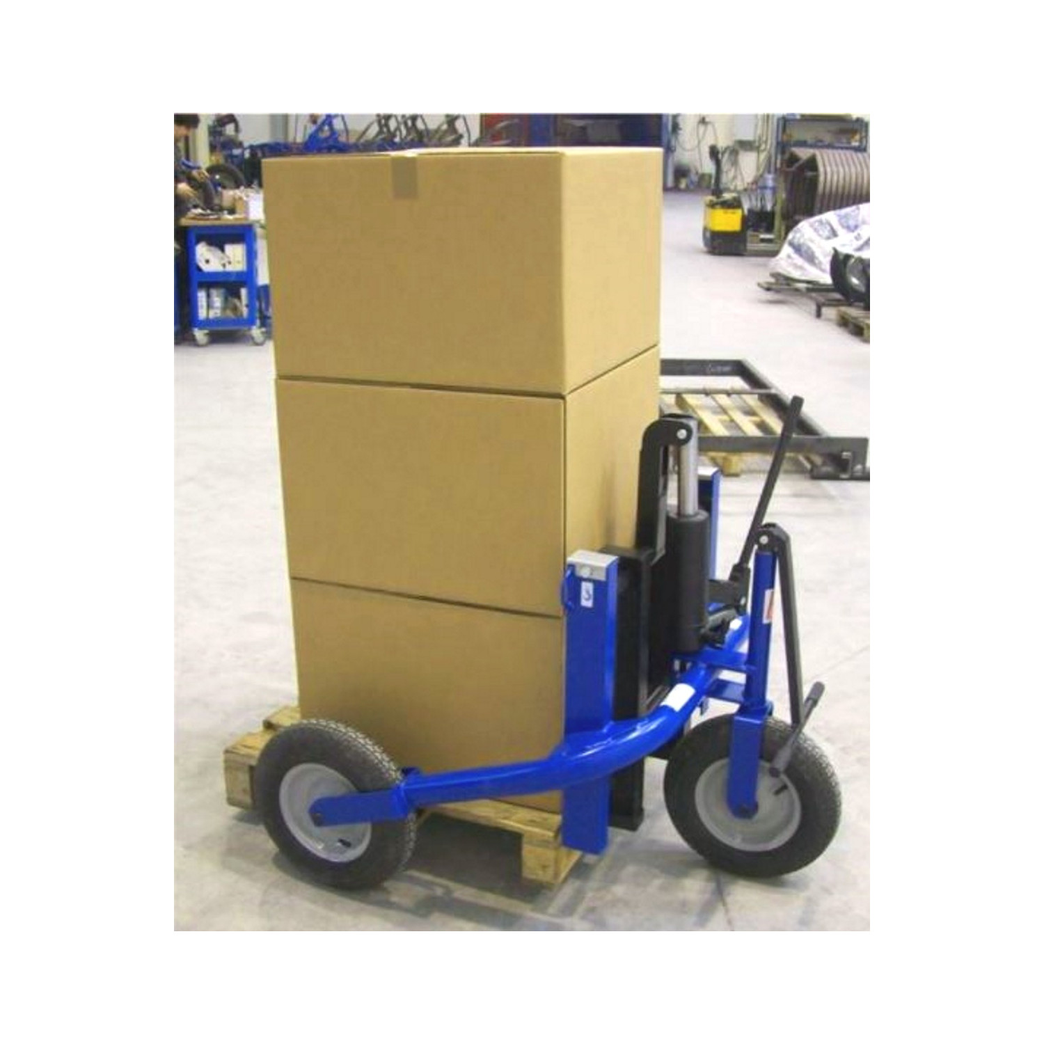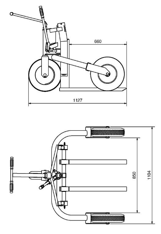 Der Geländehubwagen ist mit einer profilierten Luftbereifung ausgestattet. Somit eignet sich das Arbeitsgerät ideal für den Einsatz, beispielsweise auf Schotterplätzen und Kieswegen. Der Gabelaußenabstand kann, dank den beweglichen Gabelzinken, bis zu einer maximalen Palettenbreite von 850 mm individuell ausgewählt werden. Der Geländehubwagen mit einer verkürzten Gabel von 660 mm eignet sich ideal für Halbpaletten. Die Geländehubwagen überzeugen mit verstärkter Hubdeichsel.