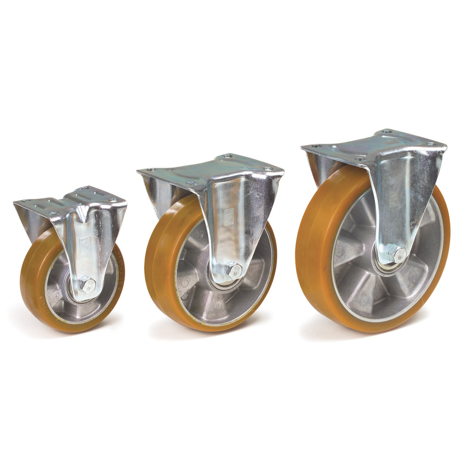 | Ausführung | Lenkrolle | Lenkrolle | Lenkrolle | Lenkrolle mit Feststeller | Lenkrolle mit Feststeller | Lenkrolle mit Feststeller | Bockrolle | Bockrolle | Bockrolle | |