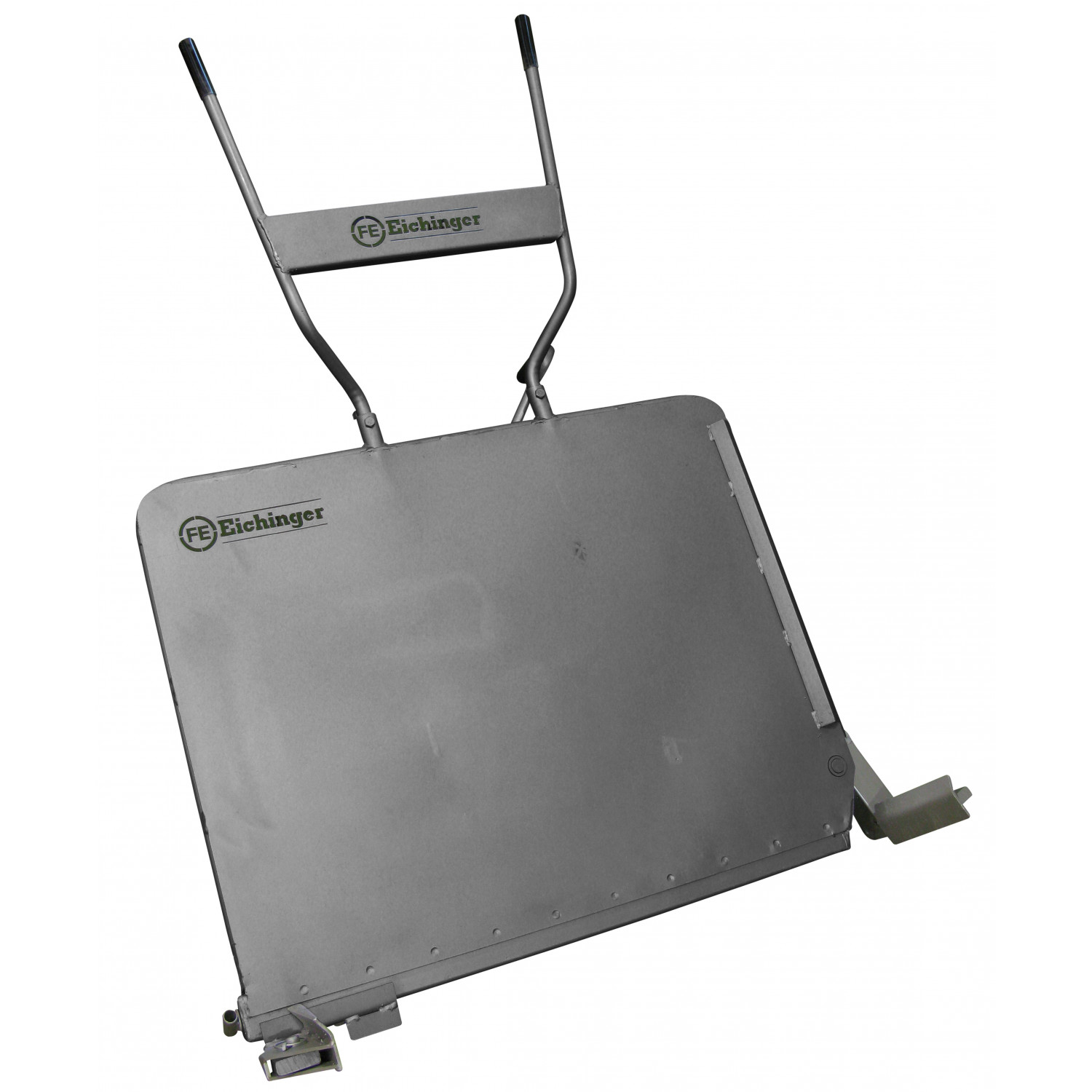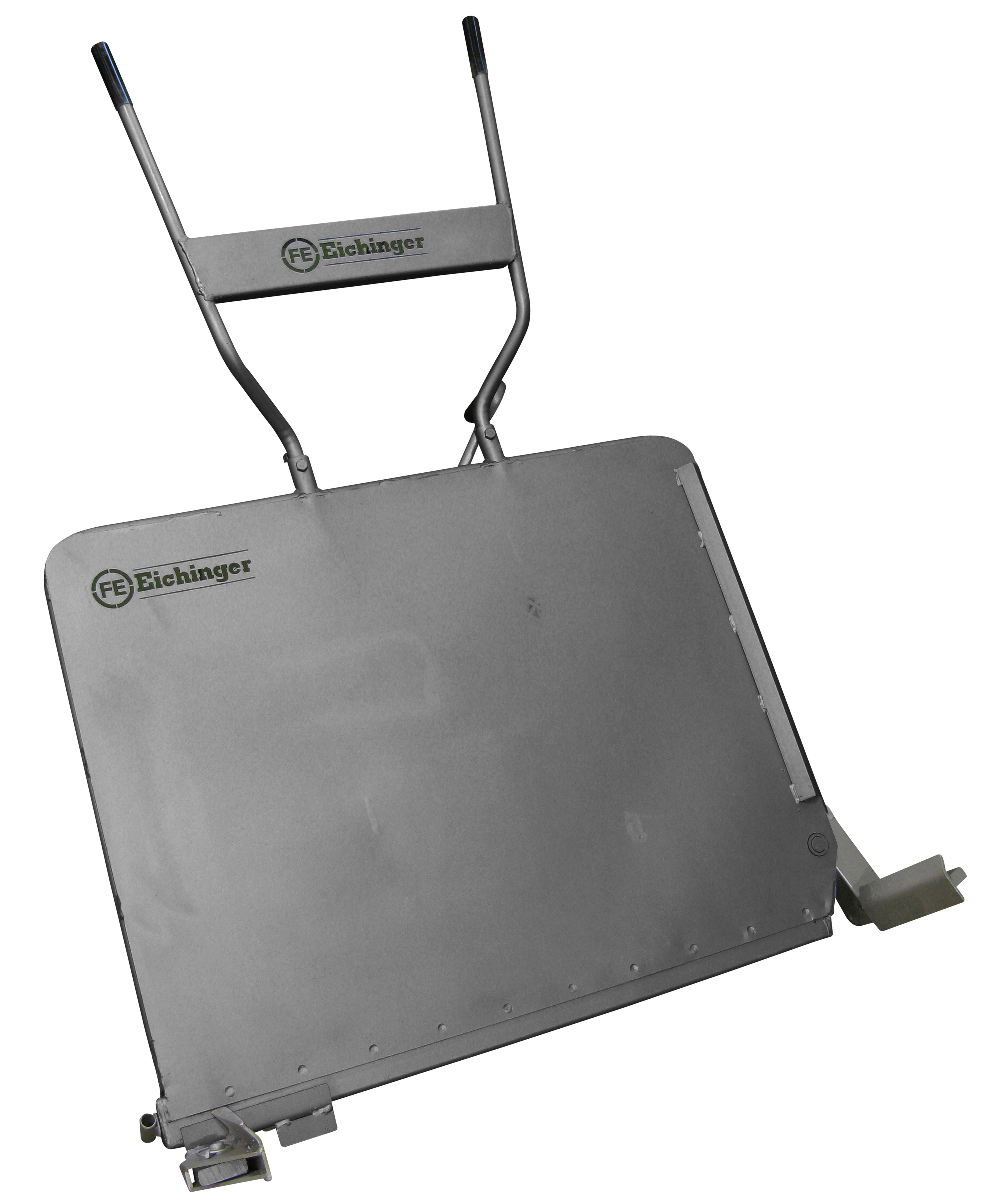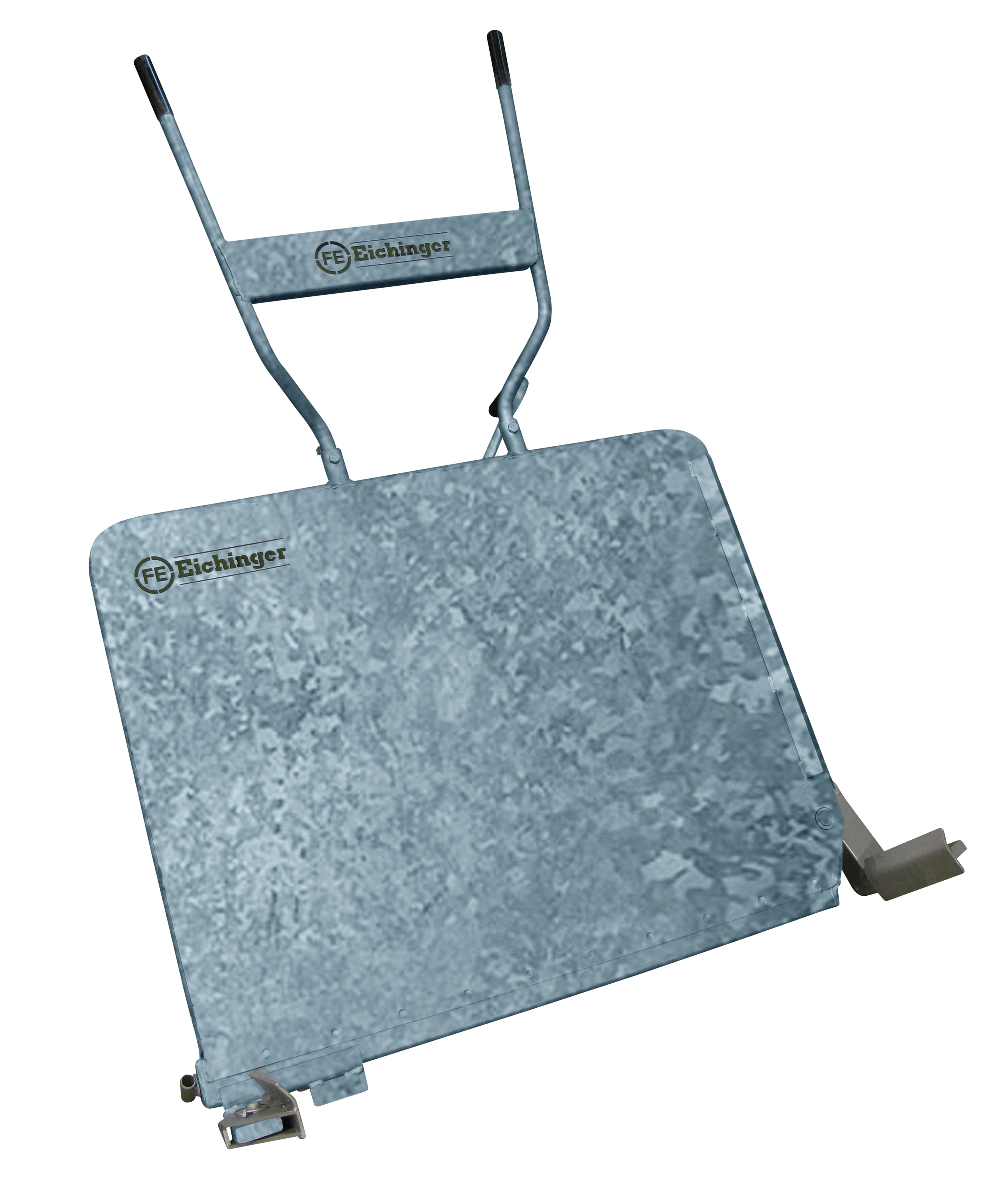 - Durch die abgeschrägte Stahlblechschaufel stehen die Platten sicher angelehnt an den Rahmen
