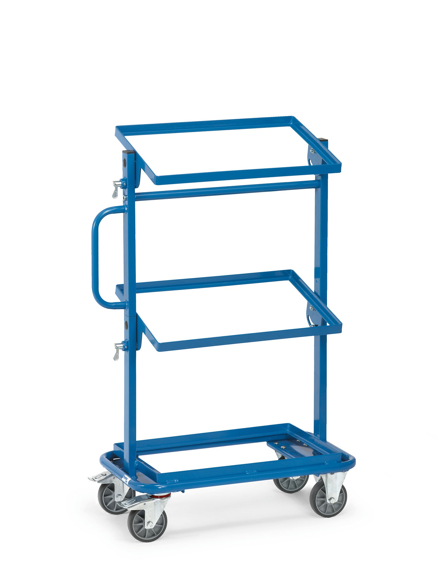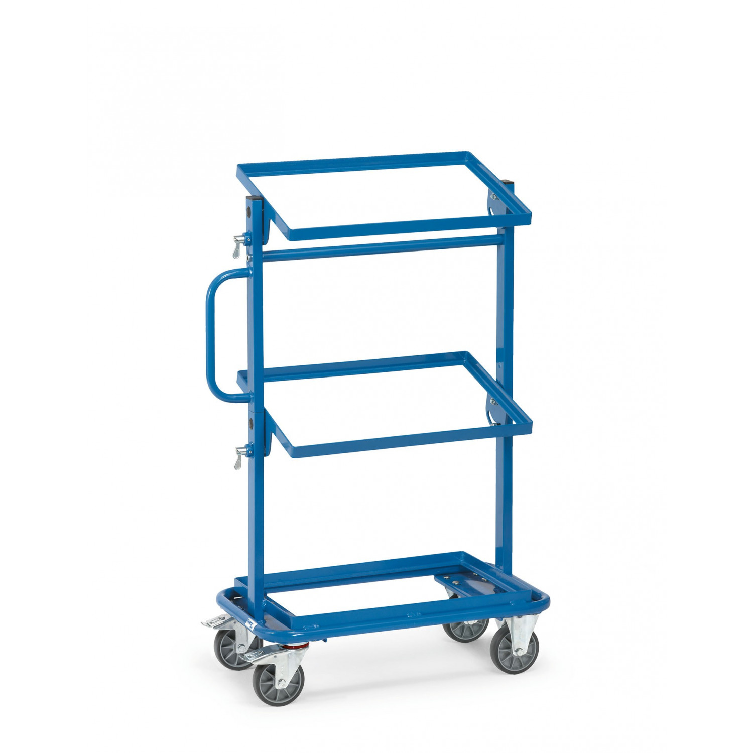 Die Ladefläche des Beistellwagens misst L 605 x B 405 mm und bietet ausreichend Platz für Ihre Waren. Der Wagen ist pulverbeschichtet in einem ansprechenden Blau RAL 5007 und ist somit nicht nur funktional, sondern auch optisch attraktiv.