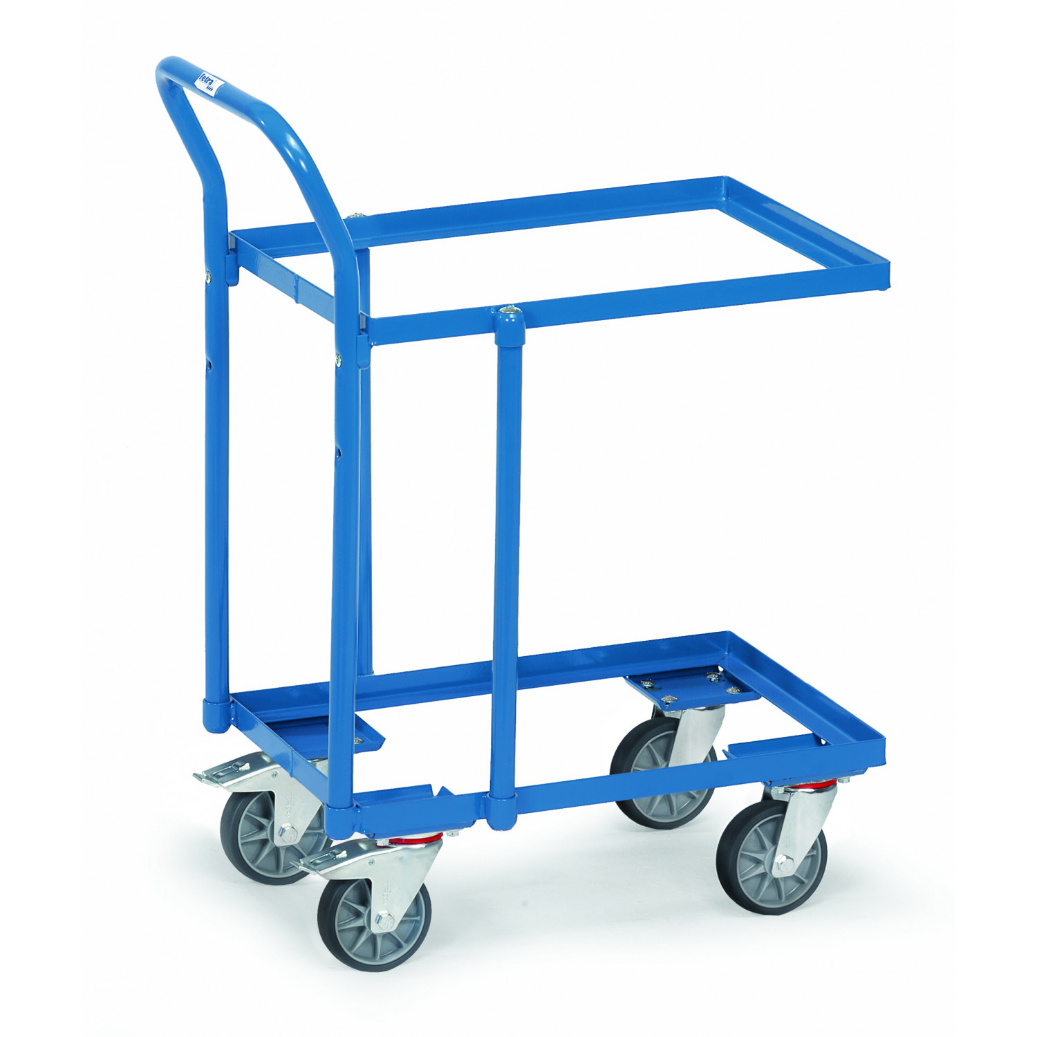 Der Etagenroller mit Rohrschiebebügel von FETRA ist die ideale Lösung für Ihren komfortablen Transportbedarf. Mit 2 Plattformen bietet dieser Wagen ausreichend Platz für Ihre Waren, während die 2 offenen Rahmen zusätzliche Flexibilität für die Aufnahme von Eurokästen bieten.