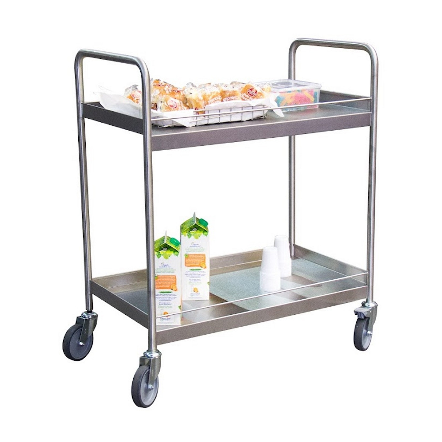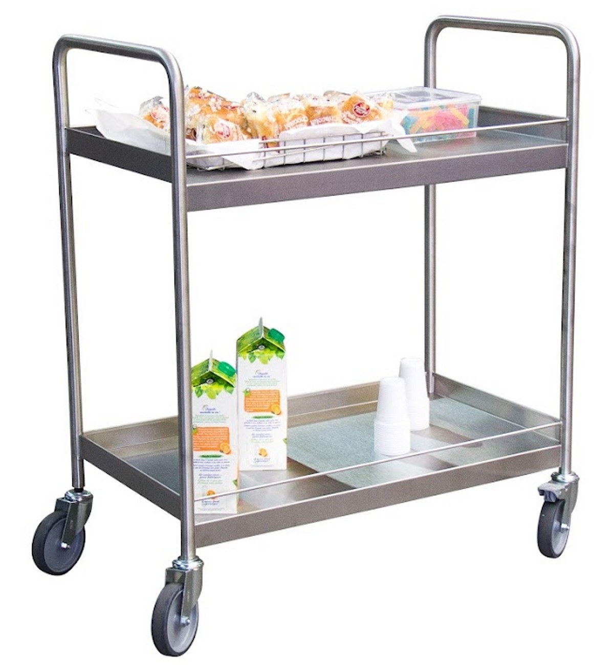 - Der Servierwagen aus Edelstahl ist leicht, wendig und leise