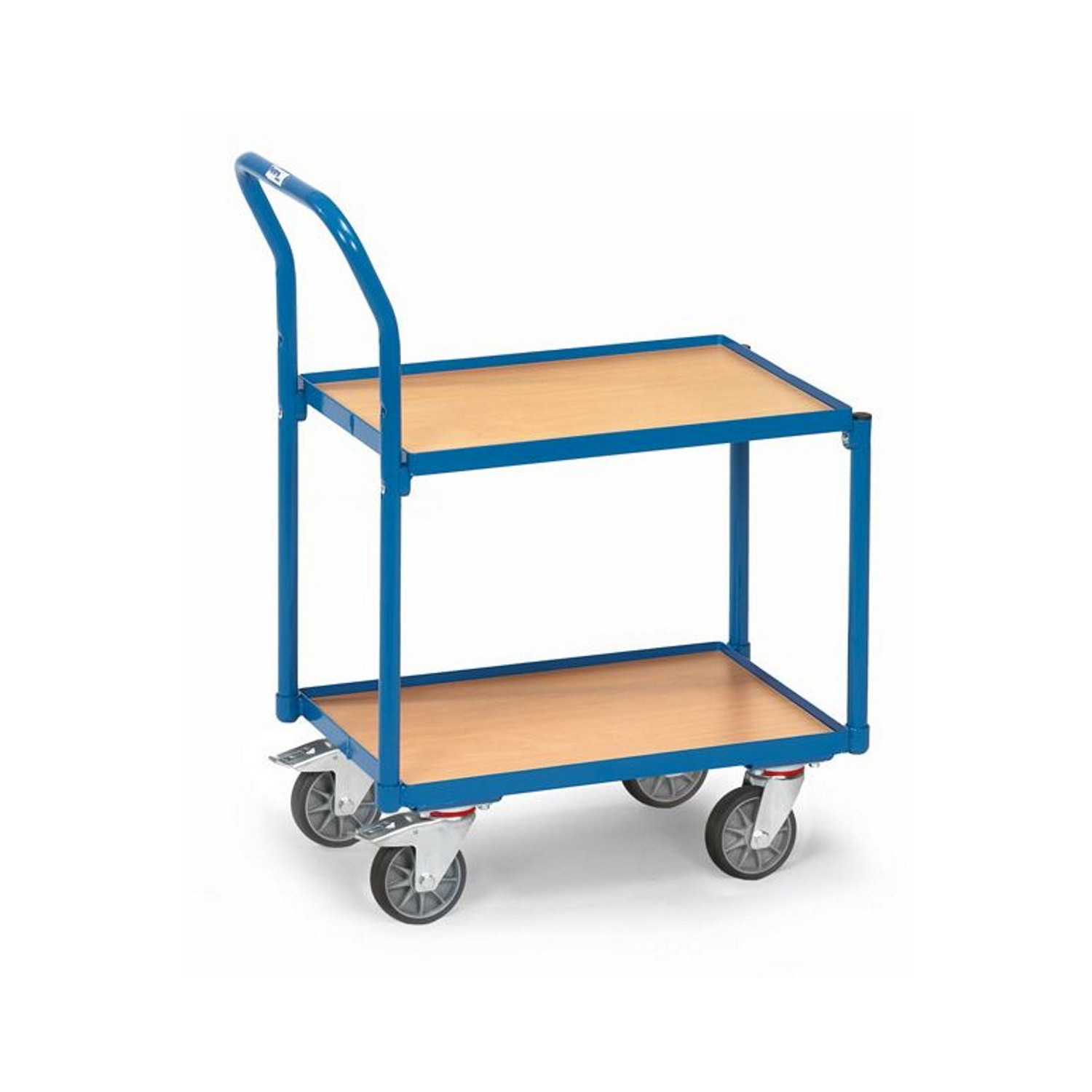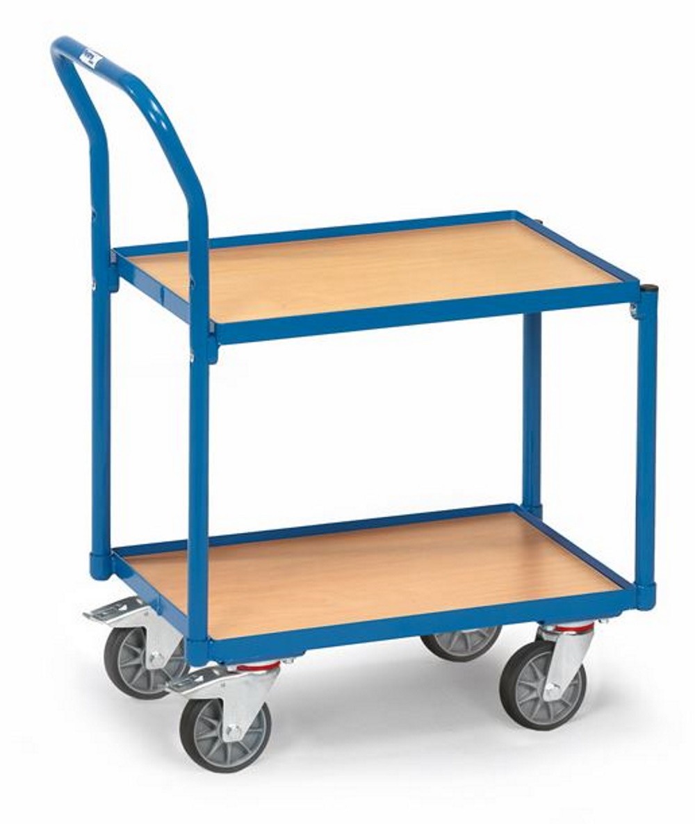Der Wagen ist mit zwei Rahmen ausgestattet, die mit Böden aus Holzwerkstoffplatte im ansprechenden Buchendekor versehen sind. Die obere Ladefläche hat eine Tragkraft von bis zu 100 kg und ist perfekt geeignet für Eurokästen mit den Abmessungen 600 x 400 mm. Die vier Lenkrollen mit TPE-Bereifung ermöglichen einen leisen und mühelosen Transport. Die Naben sind mit Rillenkugellagern ausgestattet, und zwei Lenkrollen verfügen über Feststeller, die gemäß der Europäischen Norm EN 1757-3 konzipiert sind, um ein Wegrollen beim Be- und Entladen zu verhindern.