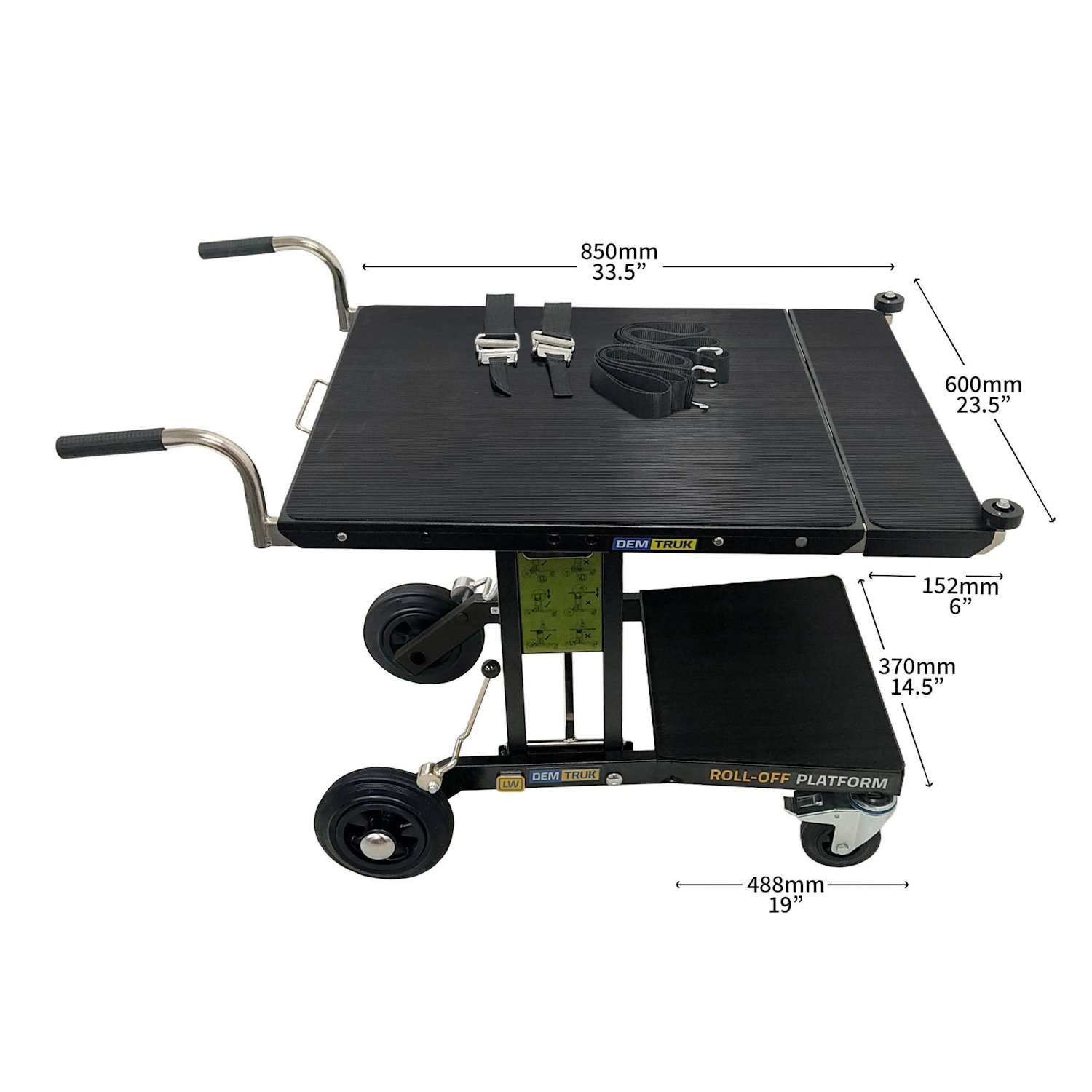 - Der Demtruk ist mit einer abnehmbaren Plattform mit Rollen ausgestattet, für ein einfaches Beladen von Fahrzeugen