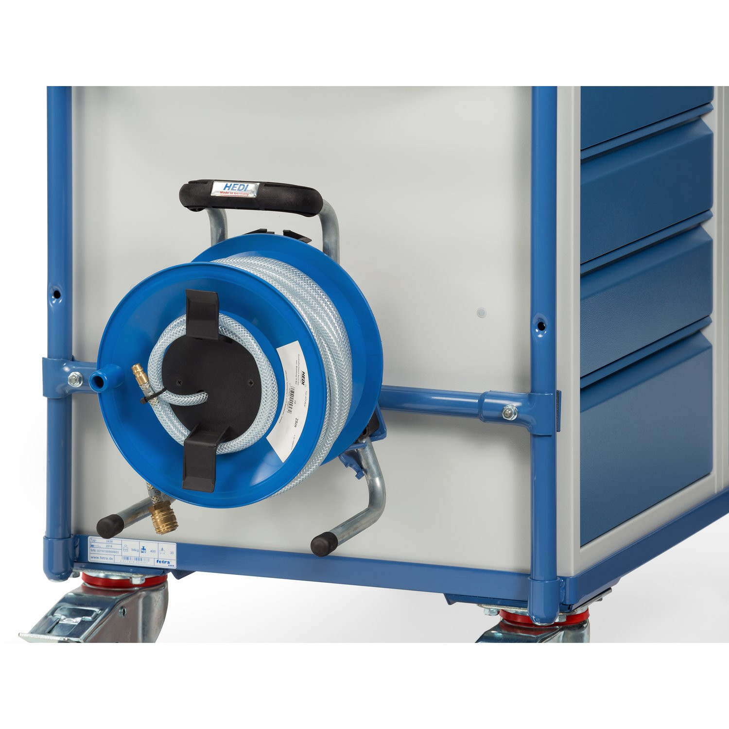• Mit dem Druckluftschlauchtrommel-Anbausatz haben Sie jederzeit einen Druckluftschlauch griffbereit an Ihrem Tischwagen