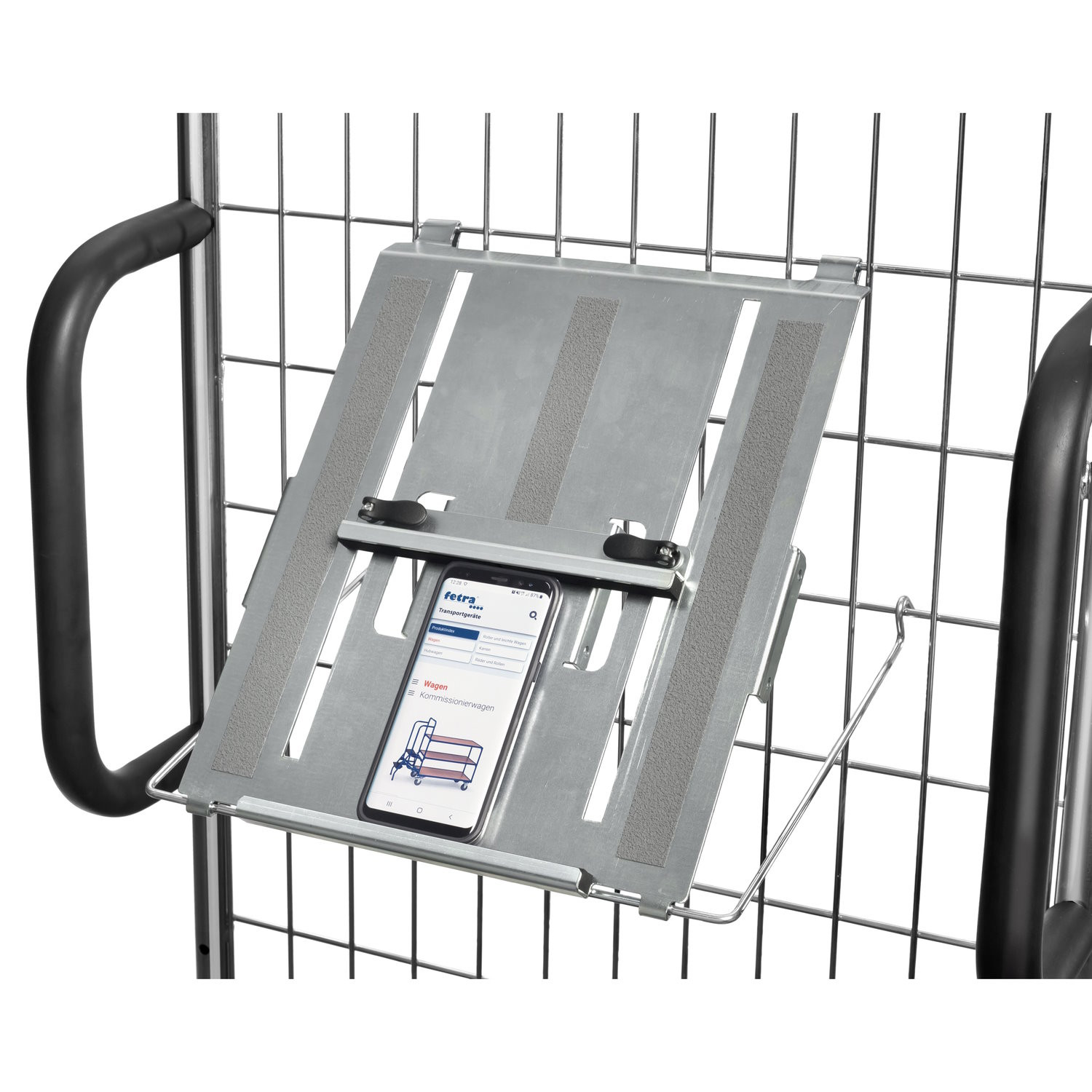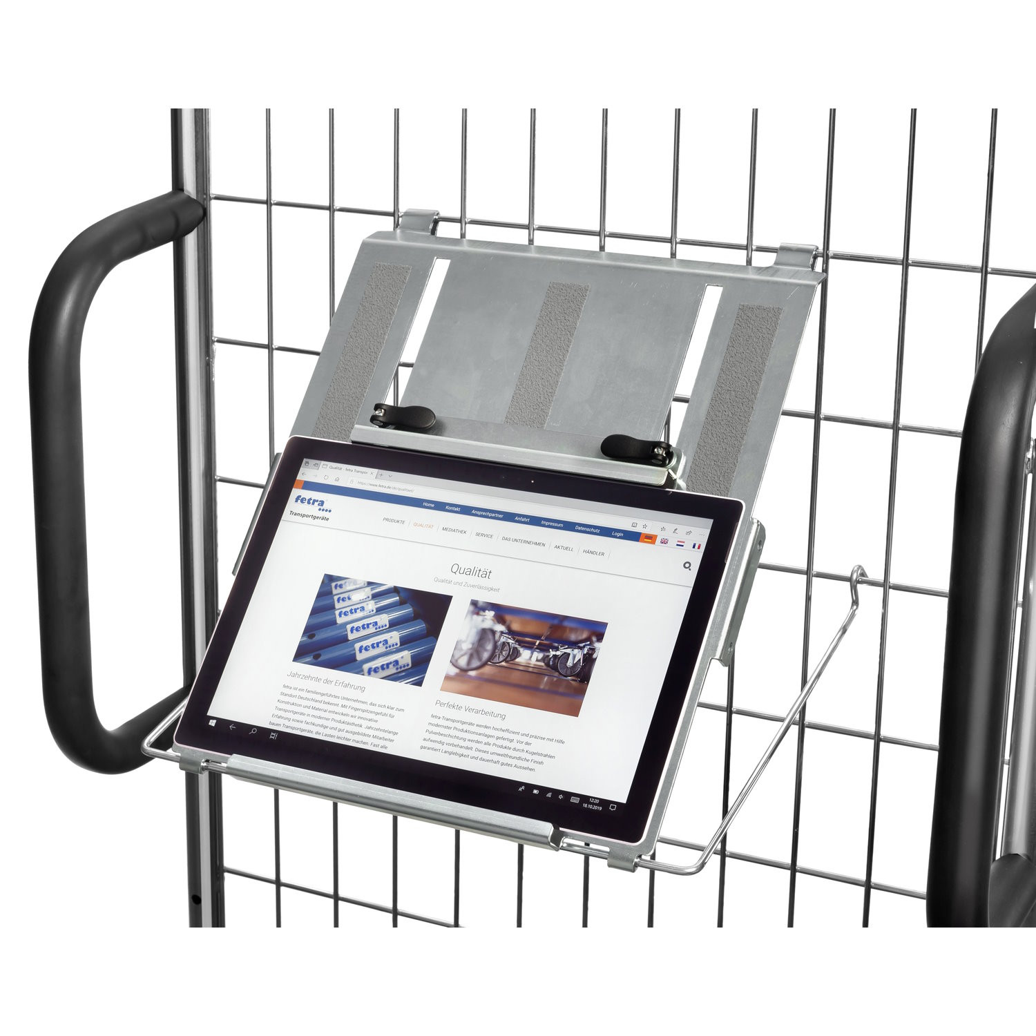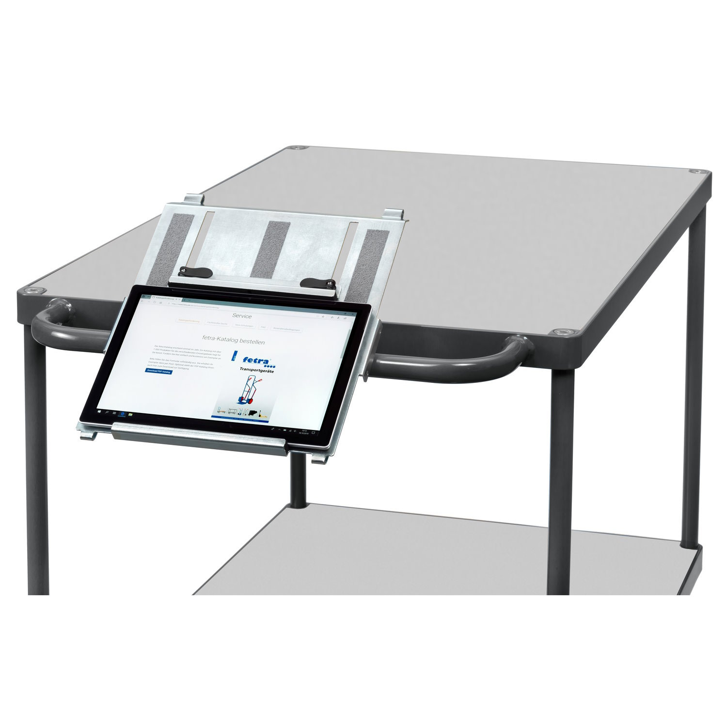 - Die Neigung der Tablethalterung lässt sich einfach mittels Stützbügel einstellen