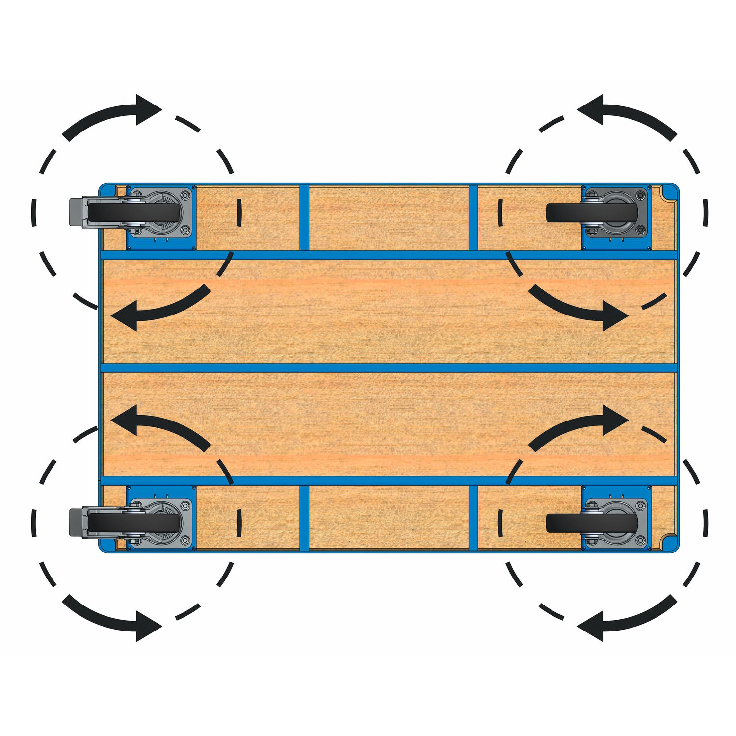 - Durch den Umbau auf 4 Lenkrollen erhält der Transportwagen eine sehr hohe Wendigkeit und eine gute Beweglichkeit in alle Richtungen