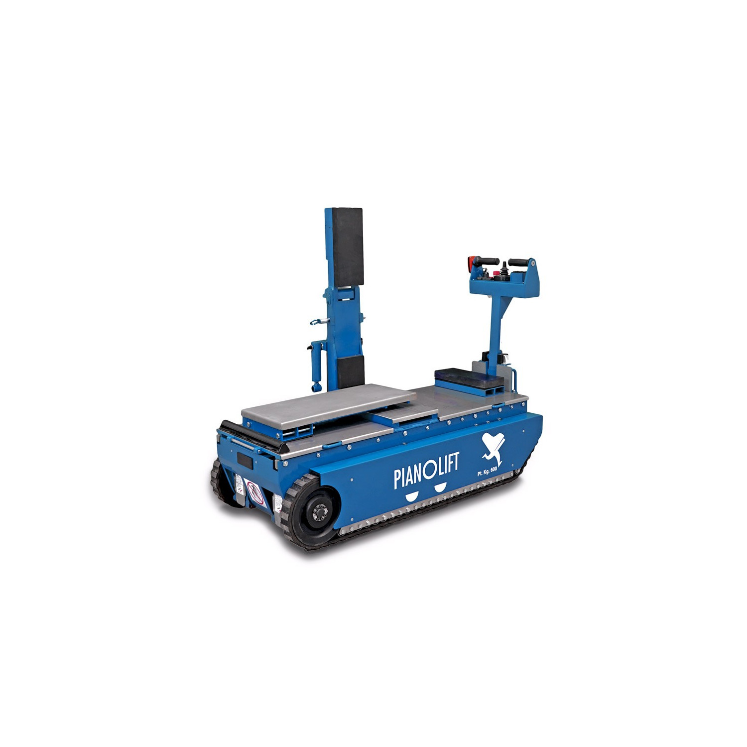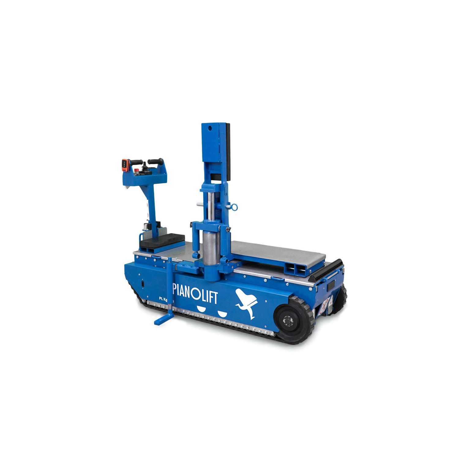 Dank des patentierten Pianolift-Systems und des Hydraulikarms reicht eine Person aus, um einen großen Konzertflügel auf einen LKW zu laden, abzuladen, eine Treppe hinauf zu befördern, auf die Seite zu kippen und wieder aufrecht hinzustellen.