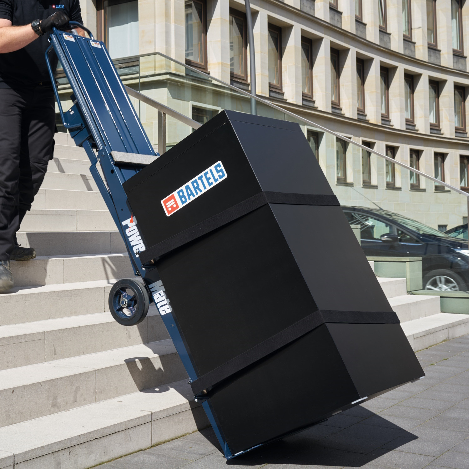 • 1 x Treppensteiger PowerMate M-1B mit ausklappbaren Stützfahrrädern